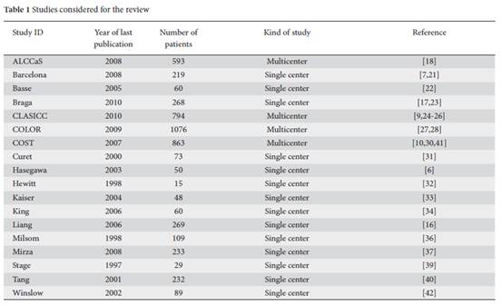 The aim of this review is to evaluate results of studies comparing laparoscopic and open colon resections. Short-term results and complications, intraoperative findings, survival and oncological outcomes were mainly studied.