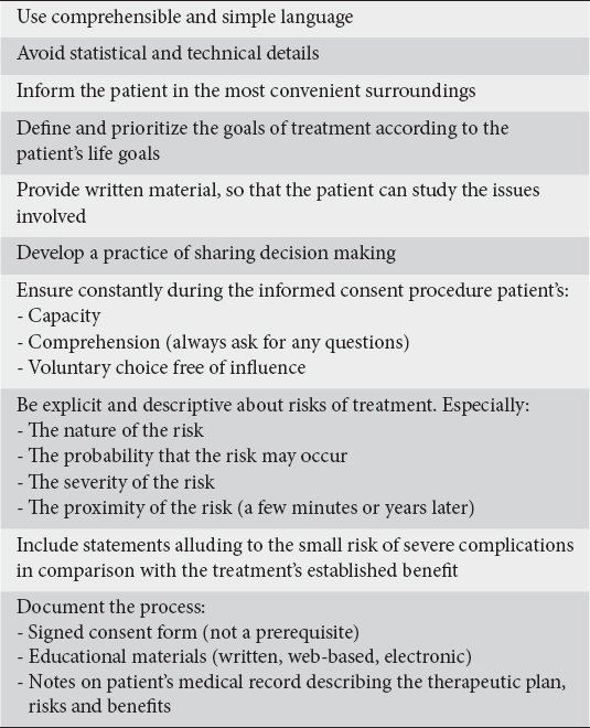 Table 2 Recommendations for a valid informed consent